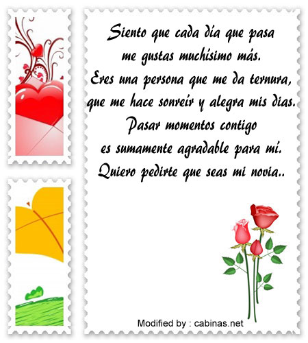 :: “Siento que cada día que pasa me gustas muchísimo más. Eres una persona que me da ternura, que me hace sonreír y alegra mis dias. Pasar momentos contigo es sumamente agradable para mí. Quiero pedirte que seas mi novio?”.Categoria: Mensajes de amor